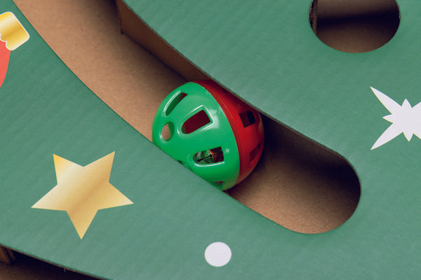 Lo que hace que este juguete para rascar sea tan divertido es que está hecho de cartón, un tipo de material en el que a tu gato le gusta meter las uñas. Eso hace que este juguete para gatos sea el mejor regalo para tu gato debajo del árbol de Navidad. Además, se ha añadido un gran elemento de juego, un túnel con una pelota de juego.