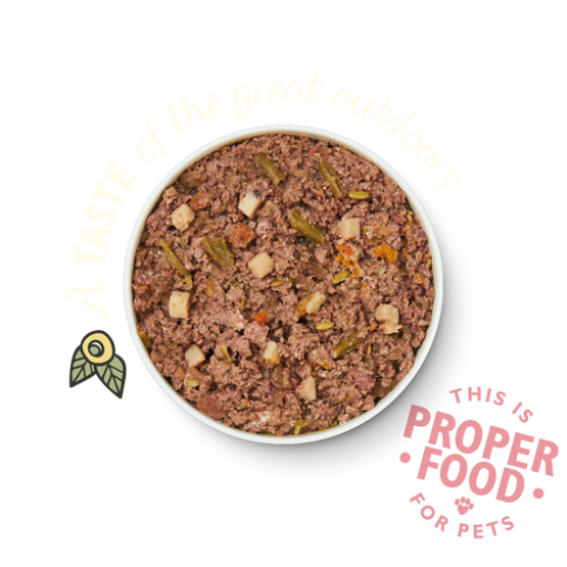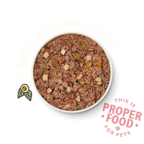 Receta irresistible, completa y sin cereales, elaborada con ciervo, faisán y salmón recién preparados. Esta cena de alimento húmedo para perros puede ser una excelente alternativa para los perros sensibles a las fuentes de proteínas tradicionales.