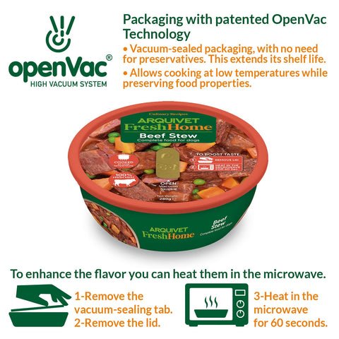 Envase con Tecnología patentada OpenVac. Sellado al vacío sin necesidad de conservantes, prolongando así su vida útil. Permite cocinar a baja temperatura preservando las propiedades de los alimentos.