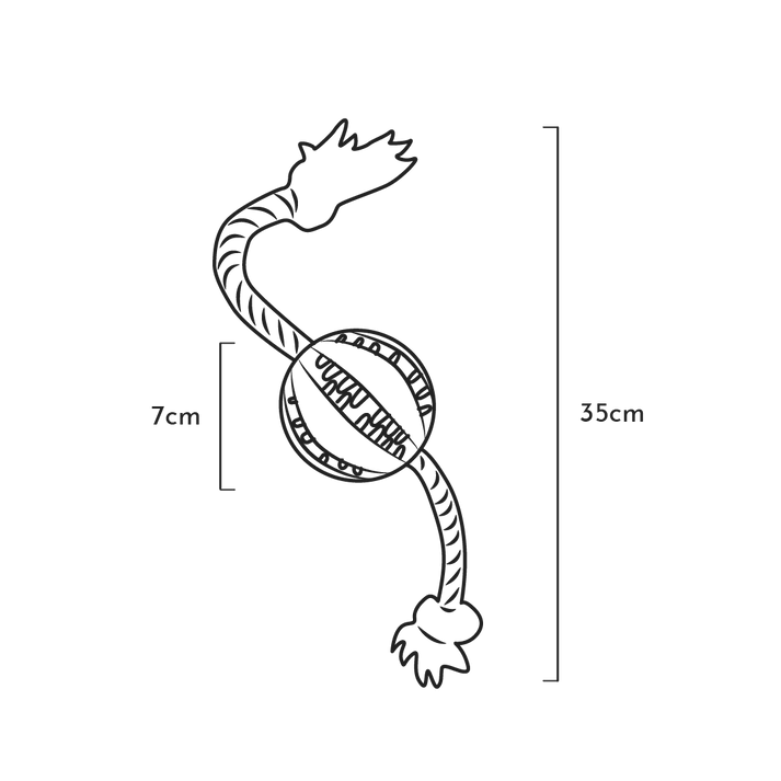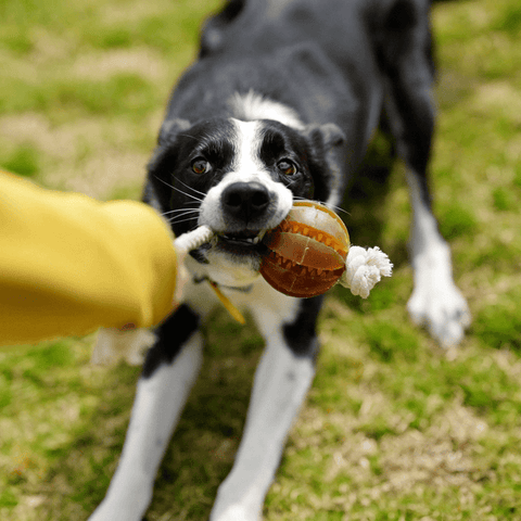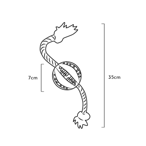 Esta pelota nos permite interactuar con nuestro perro jugando al tira y afloja gracias a su cuerda, proporcionándole esa necesidad de morder y de tirar que tienen por naturaleza. Este juego nos ayudará también a mejorar nuestro vínculo con él.