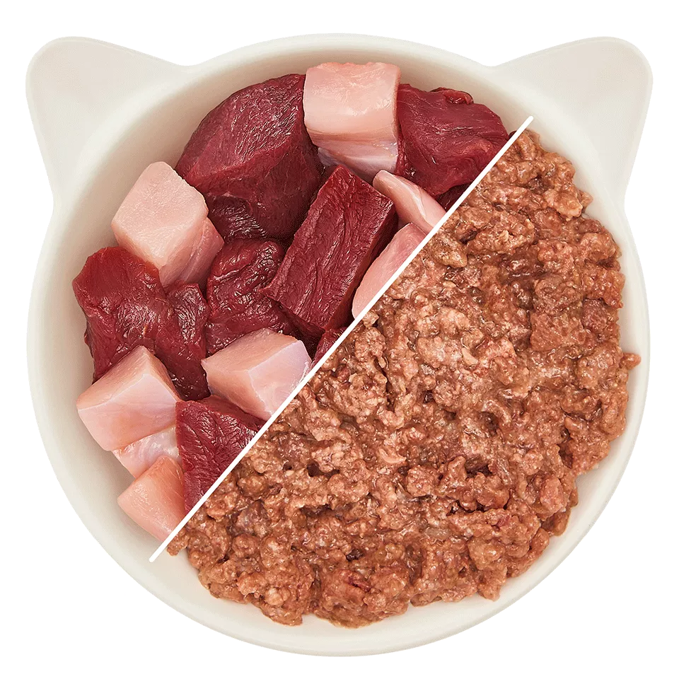Menú completo para gatos de todos los tamaños, edades y razas: 99 % de carne, pescado, visceras y caldo.
