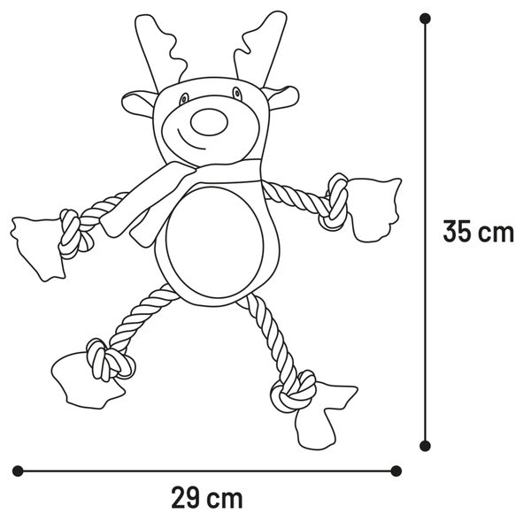 Material: felpa y cuerda de algodón |Con sonido para que disfruten jugando |Medidas: 29cm L x 10cm An x 35cm Al