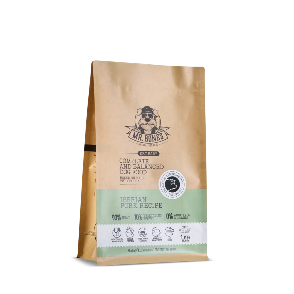 La Comida Deshidratada de cerdo ibérico de MR.BONES es una opción equilibrada, natural y saludable para quienes quieren dar a su perro o gato una nutrición de calidad superior sin complicaciones.