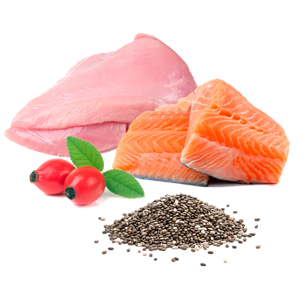 - 10% Salmón*: Excelente fuente natural de ácidos grasos omega-3 (EPA y DHA), proteínas completas, vitamina D y B12