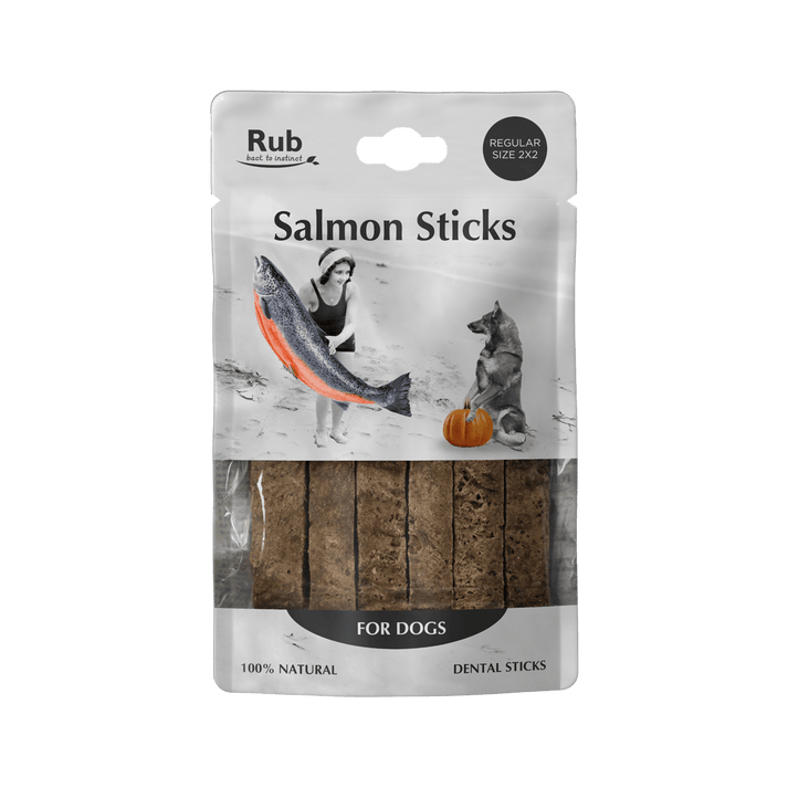 Las barritas dentales de salmón para perros con ingredientes naturales, ayudan a limpiar sus dientes, a refrescar su aliento y a reducir la placa y el sarro.