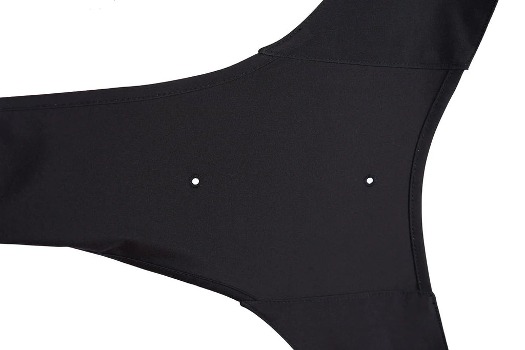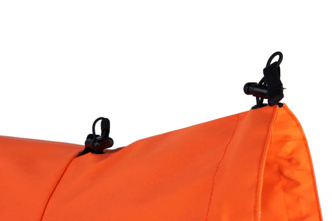 Las correas para las patas ayudan a mantener el abrigo en la posición correcta y evitan que se levante con vientos fuertes.